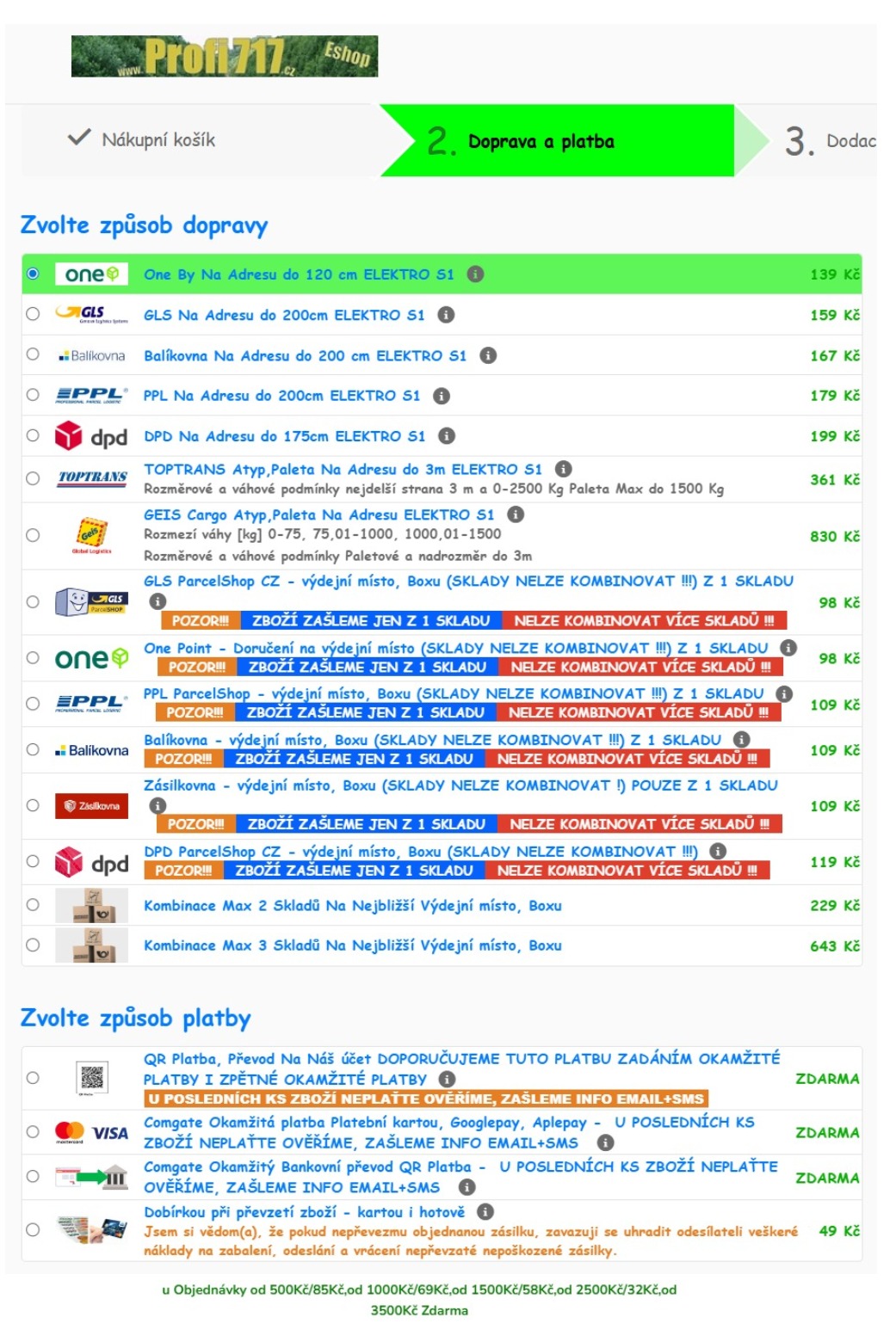 Sklady Nekombinovat! Na Adresu<2m,Výd.místa<50cm ČR od 0Kč >2500-3500 0Kč (Pneu od 110-145Kč/Ks 4Ks/440-580Kč), Nadrozměr<300cm >219Kč/ PLOTY 229-484Kč >12000 0Kč/ Beton MS Kraj>799Kč